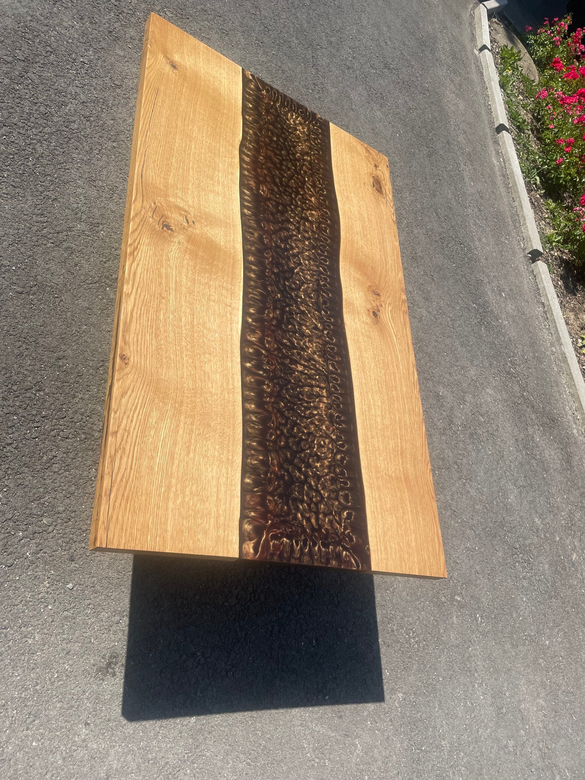 Eichenholz trifft auf Mokka Epoxidharz.